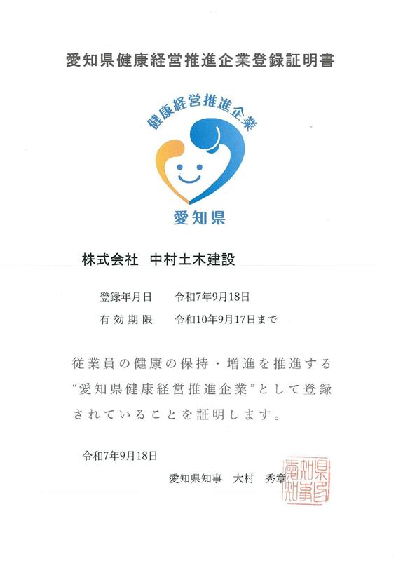 このたび、当社は愛知県が推進する「健康経営推進企業」に登録されました。